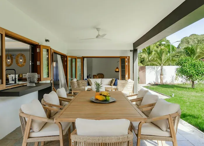 Located nearly a 25-minute walk from the Pointe Aux Piments Public Beach, the 3-bedroom Sejournez A Okalm Villa Trou aux Biches includes a botanical garden with a terrace for a more entertaining stay. Featuring a terrace, the villa is situated in proximity to Evaco Beach Club.